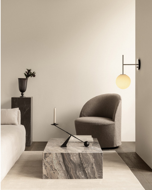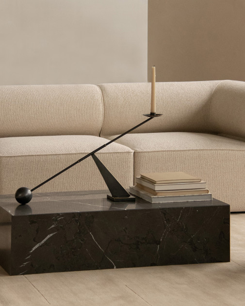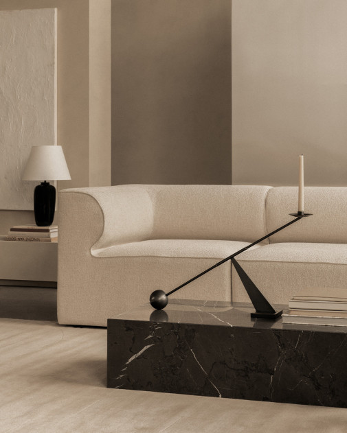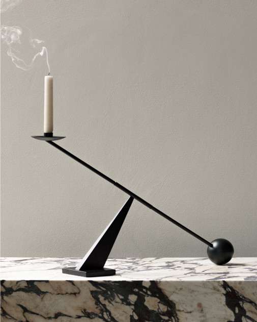 Interconnect Candle Holder to rzeźbiarski świecznik zaprojektowany przez Colina Kinga dla Audo Copenhagen. Monumentalna forma oparta na prostych geometrycznych kształtach – kuli, linii i kącie – tworzy wyrazisty obiekt, który pełni zarówno funkcję użytkową, jak i dekoracyjną. Projekt doskonale sprawdza się jako centralny element stołu, komody lub stolika kawowego.