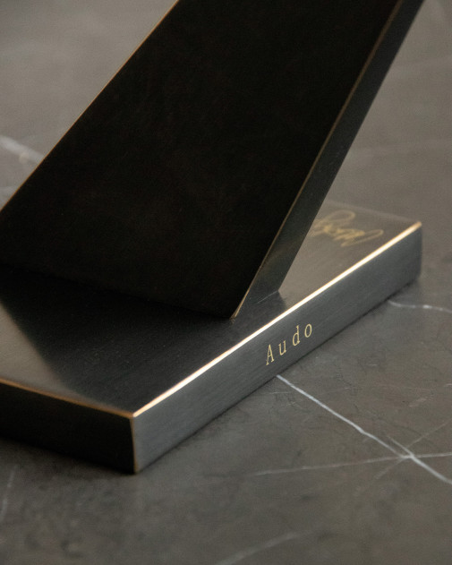 Świecznik dostępny jest w kilku wykończeniach – polerowanym mosiądzu, patynowanym mosiądzu oraz malowanej stali. Każdy wariant podkreśla inną stronę projektu: od eleganckiego połysku metalu po bardziej minimalistyczną, matową estetykę.