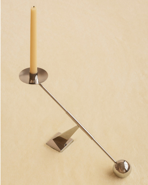 Interconnect Candle Holder Small jest wyrazem charakterystycznego podejścia projektowego Colina Kinga, w którym prostota formy spotyka się z wyrazistą kompozycją przestrzenną. Projekt opiera się na zestawieniu kilku podstawowych elementów geometrycznych – linii, kąta i kuli – które tworzą dynamiczną, a zarazem harmonijną całość.