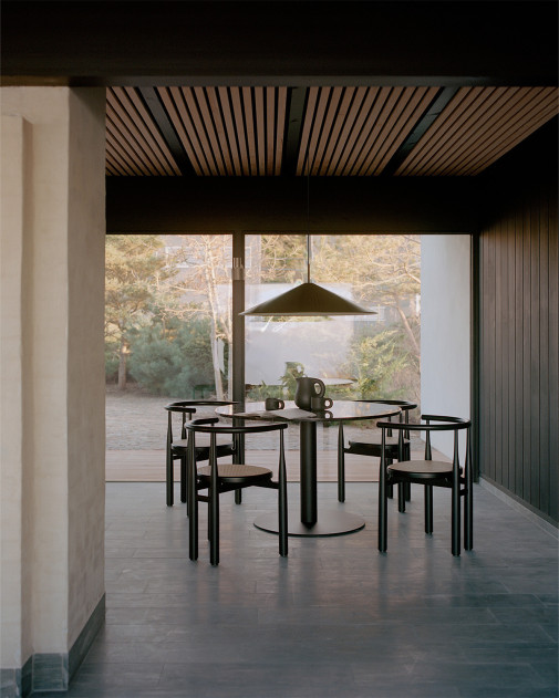To, co definiuje projekt, to proporcja. Rozszerzający się klosz tworzy wyraźną, architektoniczną sylwetkę, która organizuje przestrzeń pod lampą. Forma jest precyzyjna i zamknięta, ale jednocześnie wizualnie lekka.