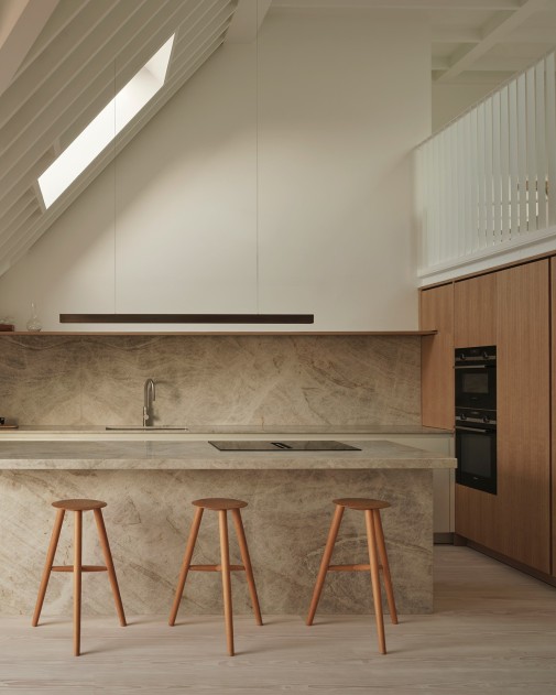 I-MODEL Cordless to liniowa lampa wisząca o czystej, minimalistycznej formie – bez widocznych przewodów. Zapewnia równomierne, nieoślepiające światło nad wyspą kuchenną lub stołem.