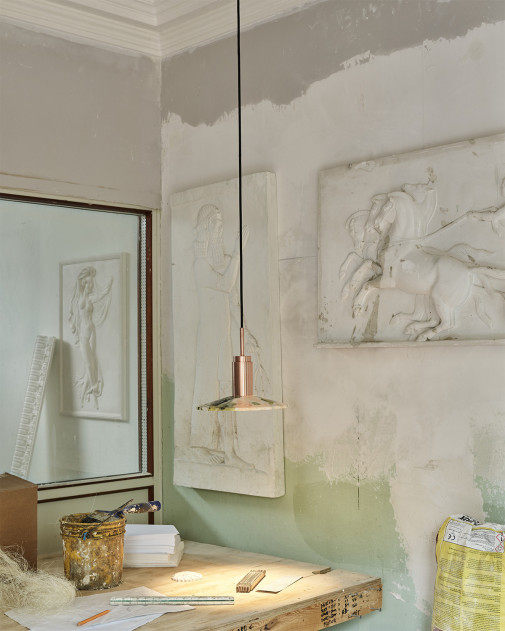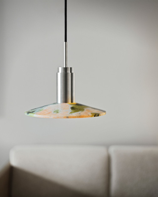 Charakter lampy wynika z zestawienia dwóch jakości: elegancji materiału i industrialnej precyzji wykonania. Powierzchnie metalu oraz detale konstrukcyjne nadają jej wyraz techniczny, ale bez wizualnego ciężaru.