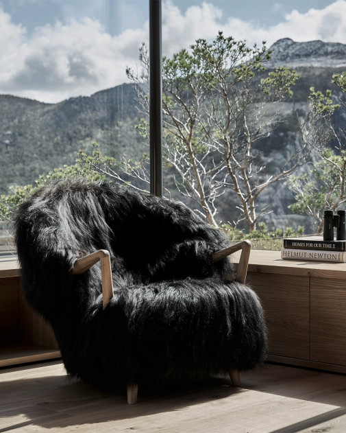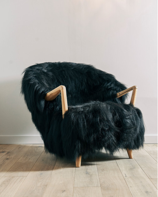 Fluffy Lounge Chair, zaprojektowany przez Fredrika A. Kaysera, to połączenie artystycznej formy i przytulnej funkcjonalności. Otulające oparcie, pochylone podłokietniki i niezwykle miękka tapicerka z norweskiej owczej skóry sprawiają, że ten fotel jest niczym unosząca się w powietrzu chmura – gotowy, by wprowadzić ciepło i komfort do każdego wnętrza.