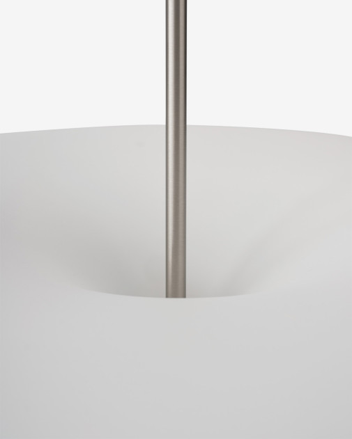 Forma lampy zmienia się w zależności od wysokości zawieszenia – zawieszona nisko eksponuje swoją „rzeźbiarską” dolną część, natomiast zawieszona wyżej działa bardziej jako miękkie źródło światła w przestrzeni.
