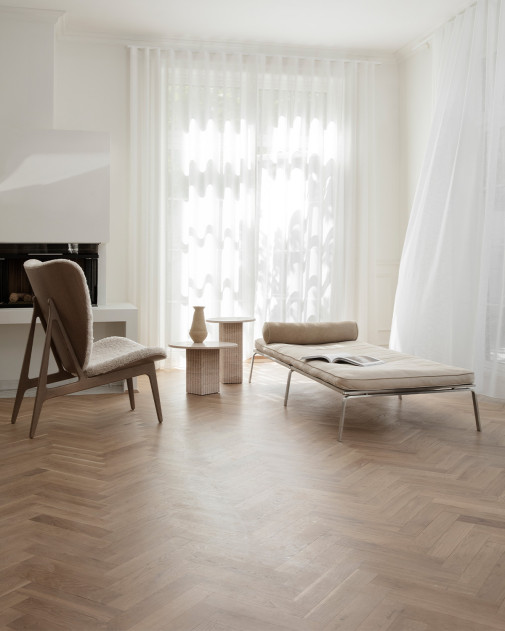 Rama z litego drewna dębowego FSC® i precyzyjnie gięta sklejka dębowa to połączenie rzemiosła i trwałości. Dostępny w wersji z tapicerowanym frontem lub pełną tapicerką, fotel można idealnie dopasować do każdego stylu wnętrza — od skandynawskich salonów po nowoczesne hotele i strefy lounge.