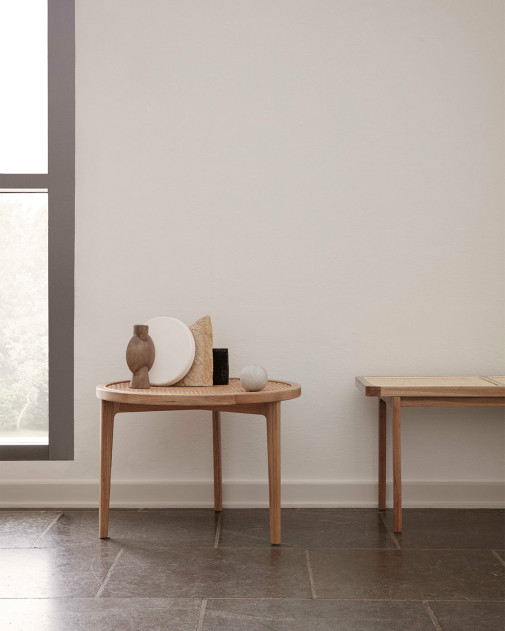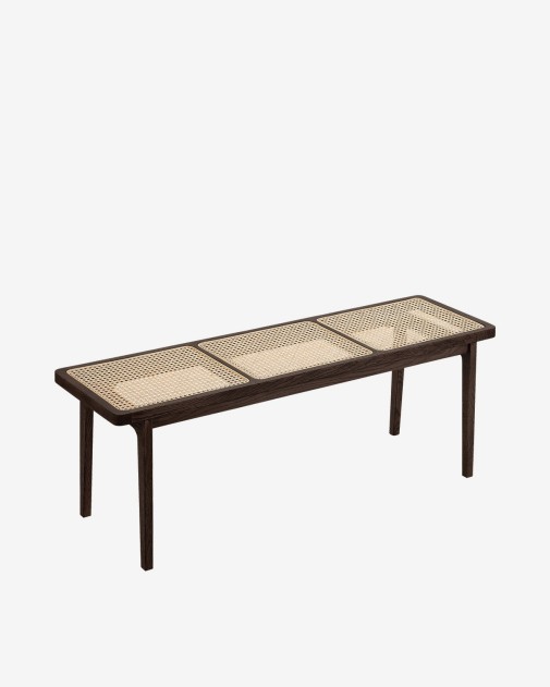 Le Roi Bench to elegancka, ponadczasowa ławka z litego jesionu i naturalnego rattanu. Może służyć zarówno jako siedzisko, jak i niski stolik.