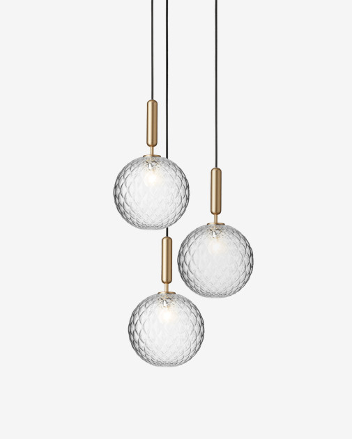 Miira 3 Large to designerski żyrandol, który łączy nowoczesny minimalizm z klasyczną elegancją. Składa się z trzech pojedynczych kloszy zawieszonych na metalowej podsufitce, co pozwala na stworzenie harmonijnej aranżacji oświetleniowej.