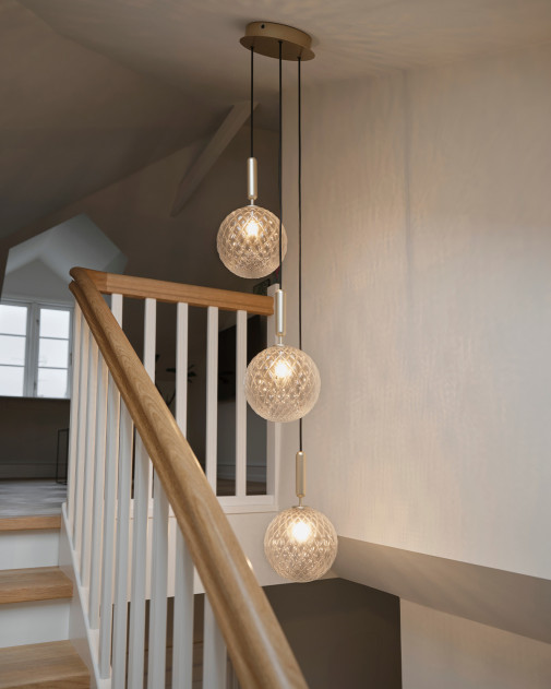 Żyrandol Miira 3 Large doskonale sprawdzi się w nowoczesnych wnętrzach – zarówno prywatnych, jak i komercyjnych. Może być umieszczony nad stołem w jadalni, w holu, w salonie lub w przestrzeniach hotelowych i restauracyjnych, gdzie będzie pełnić funkcję zarówno praktycznego źródła światła, jak i dekoracyjnego elementu wystroju.