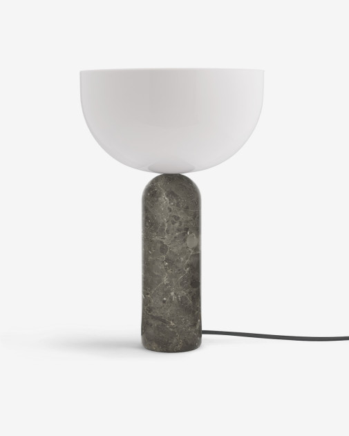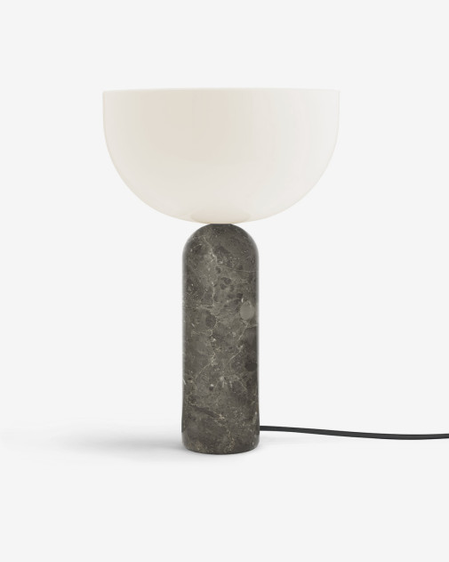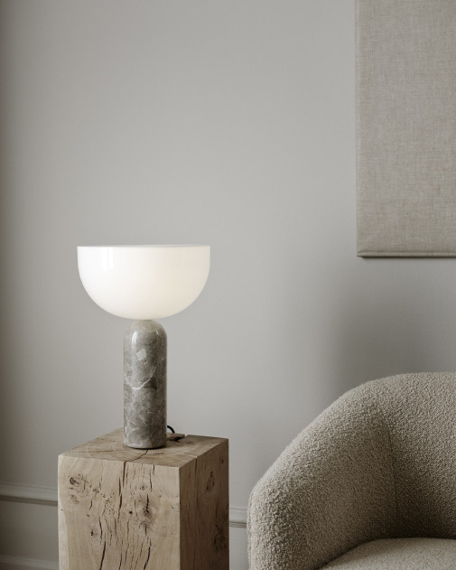 Kizu Table Lamp Large to jedna z najbardziej rozpoznawalnych lamp w kolekcji New Works, teraz dostępna w marmurze Kunis Breccia. Ten wyjątkowy kamień, wyróżniający się subtelną mieszanką rozproszonych minerałów i delikatnych kolorów, nadaje lampie wyrafinowany, naturalny charakter. Jej ikoniczna konstrukcja, składająca się z monolitycznej, marmurowej podstawy i lekkiego, opalowego klosza, tworzy wrażenie harmonijnej równowagi i płynności form. Połączenie tych dwóch elementów, znane jako "pocałunek", podkreśla kontrast między surową, naturalną fakturą marmuru a perfekcyjnie gładką, polerowaną powierzchnią. Dzięki większym rozmiarom, Kizu Table Lamp Large doskonale sprawdzi się jako elegancki element w przestronnych wnętrzach, nadając im przytulną i wyrafinowaną atmosferę. Idealnie komponuje się zarówno z nowoczesnymi, jak i klasycznymi aranżacjami, stanowiąc rzeźbiarskie oświetlenie do salonu, sypialni, biura czy przestrzeni komercyjnych. Cała kolekcja Kizu, obejmująca także mniejszą wersję stołową oraz lampę przenośną, teraz dostępna jest w odświeżonej wersji z marmurem Kunis Breccia, podkreślając jej ponadczasowy i subtelny charakter.