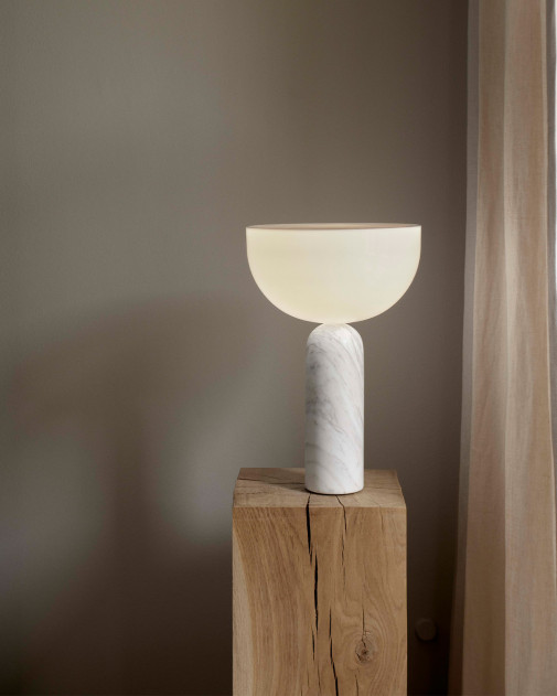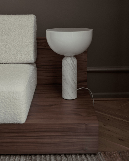 Kizu Table Lamp Large to jedna z najbardziej rozpoznawalnych lamp w kolekcji New Works, teraz dostępna w marmurze Kunis Breccia. Ten wyjątkowy kamień, wyróżniający się subtelną mieszanką rozproszonych minerałów i delikatnych kolorów, nadaje lampie wyrafinowany, naturalny charakter. Jej ikoniczna konstrukcja, składająca się z monolitycznej, marmurowej podstawy i lekkiego, opalowego klosza, tworzy wrażenie harmonijnej równowagi i płynności form. Połączenie tych dwóch elementów, znane jako "pocałunek", podkreśla kontrast między surową, naturalną fakturą marmuru a perfekcyjnie gładką, polerowaną powierzchnią. Dzięki większym rozmiarom, Kizu Table Lamp Large doskonale sprawdzi się jako elegancki element w przestronnych wnętrzach, nadając im przytulną i wyrafinowaną atmosferę. Idealnie komponuje się zarówno z nowoczesnymi, jak i klasycznymi aranżacjami, stanowiąc rzeźbiarskie oświetlenie do salonu, sypialni, biura czy przestrzeni komercyjnych. Cała kolekcja Kizu, obejmująca także mniejszą wersję stołową oraz lampę przenośną, teraz dostępna jest w odświeżonej wersji z marmurem Kunis Breccia, podkreślając jej ponadczasowy i subtelny charakter.