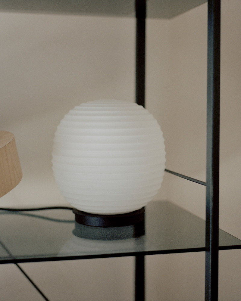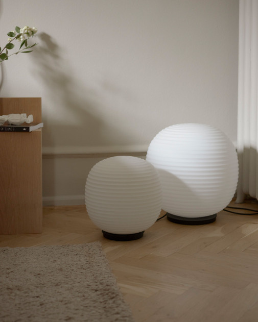 Lantern Globe Table Lamp Small to część ikonicznej kolekcji Lantern, czerpiącej inspirację z klasycznych japońskich lampionów, ale przekształconej w nowoczesny, minimalistyczny projekt. Jej karbowane, matowe szkło emituje miękkie, przytulne światło, które tworzy atmosferę ciepła i spokoju, doskonale pasując do sypialni, salonu, czytelnika, a nawet eleganckich przestrzeni komercyjnych. Lampa spoczywa na czarnej stalowej podstawie, która zapewnia stabilność i podkreśla kontrast pomiędzy lekkością szklanego klosza a solidnością konstrukcji. Dzięki kompaktowym wymiarom, można ją umieścić na stoliku nocnym, biurku, konsoli czy półce, dodając wnętrzu subtelnej elegancji. Lantern Globe Table Lamp Small doskonale komponuje się z innymi modelami z kolekcji Lantern, w tym z wersjami sufitowymi, podłogowymi i ściennymi, pozwalając na stworzenie spójnego oświetlenia w całym wnętrzu.