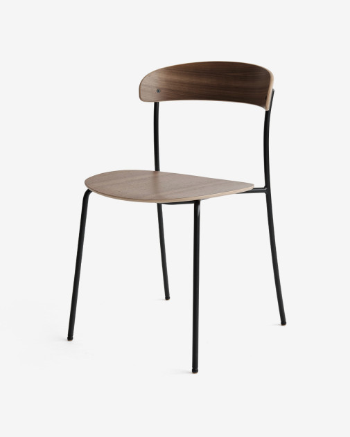 Missing Chair to lekka i minimalistyczna reinterpretacja klasycznego krzesła kawiarnianego. Jego zmysłowa forma i smukła stalowa rama nadają mu elegancji, podczas gdy unoszące się drewniane siedzisko i oparcie tworzą efekt wizualnej lekkości. Stabelne, trwałe i wygodne, doskonale sprawdzi się zarówno w przestrzeniach prywatnych, jak i komercyjnych.