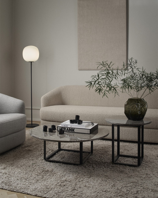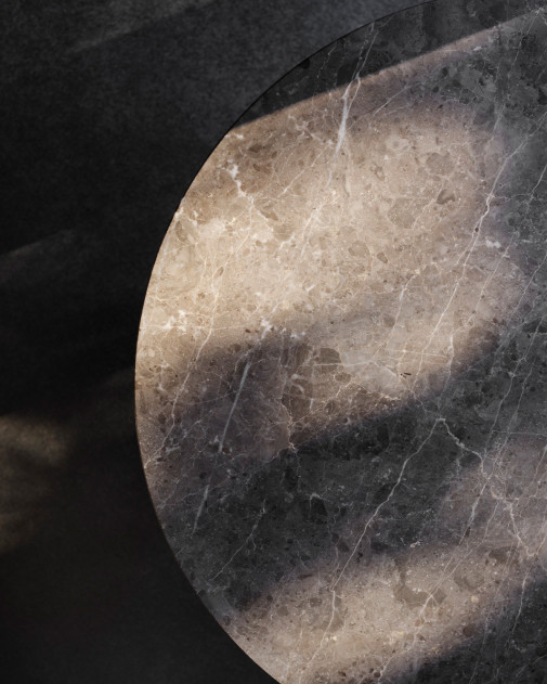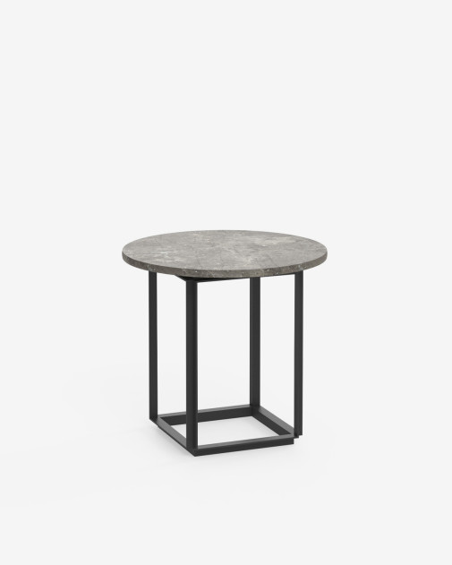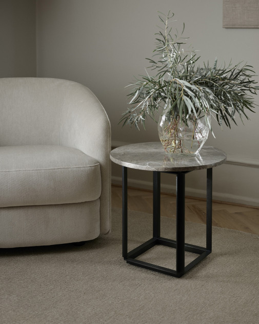 Florence Side Table Ø50 to elegancki stolik boczny łączący naturalne piękno marmuru Gris du Marais z surową estetyką stalowej ramy. Jego minimalistyczny design i szlachetne materiały sprawiają, że jest doskonałym wyborem do każdej przestrzeni wypoczynkowej.