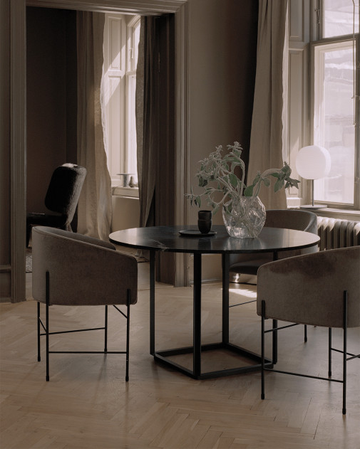 Florence Dining Table Ø120 to elegancki stół jadalniany, który łączy wizualną lekkość z ponadczasową prostotą. Smukła stalowa rama i wyrafinowany blat tworzą idealne tło dla codziennego życia i spotkań przy wspólnym stole.