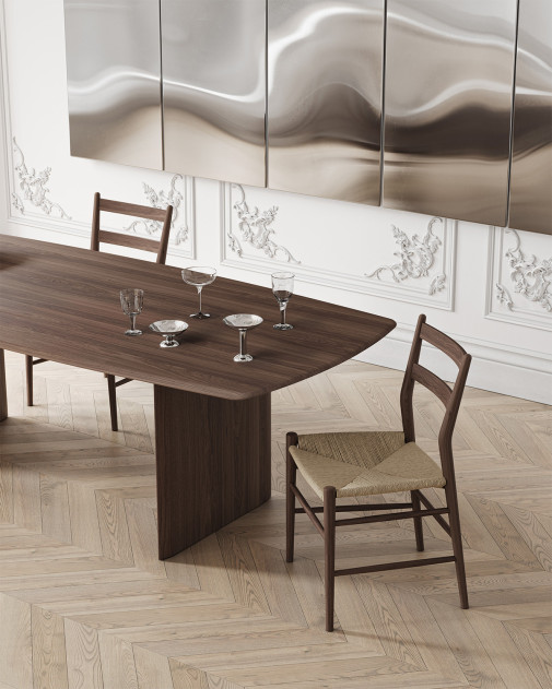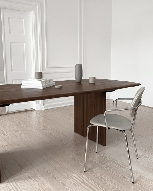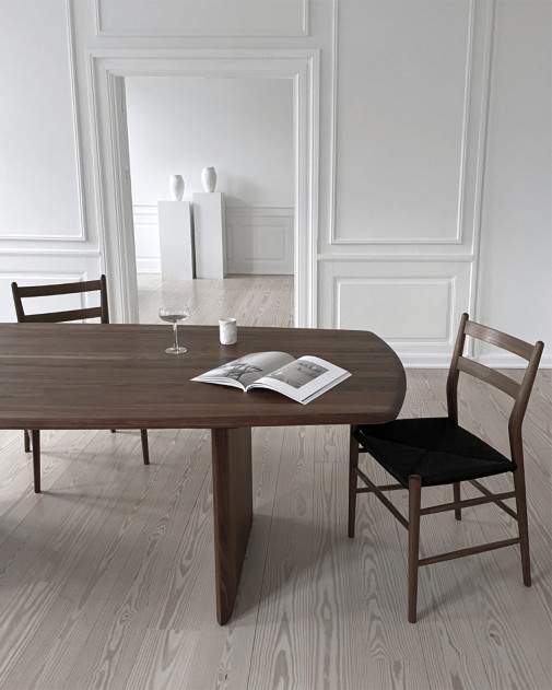 Sibast No 7 Dining Table to współczesna interpretacja klasyki duńskiego designu, powstała z myślą o spójności i harmonii we wnętrzu. Zaprojektowany przez Annę i Ditleva Sibastów, stół został stworzony jako kontynuacja i dopełnienie linii krzeseł Sibast No 7, które stanowią jeden z filarów marki. Wykonany z najwyższej jakości litego orzecha lub dębu, stół zachwyca czystą, płynną linią i organicznymi proporcjami. Blat sprawia wrażenie unoszącego się w powietrzu, oparty jest jednak na dwóch masywnych, elegancko wyprofilowanych nogach, które gwarantują stabilność i wyjątkowy charakter mebla. To projekt, który łączy trwałość, funkcjonalność i ponadczasową elegancję, będąc idealnym wyborem zarówno do wnętrz prywatnych, jak i przestrzeni komercyjnych. Stanowi też idealne tło dla kultowych krzeseł Sibast – nie przytłaczając, lecz podkreślając ich formę.