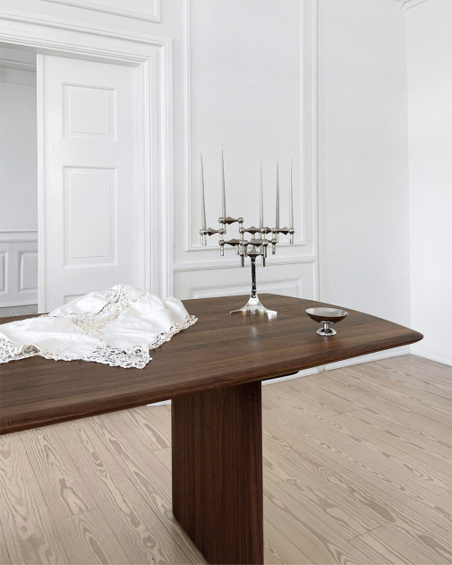 Sibast No 7 Dining Table to nowy stół jadalniany zaprojektowany przez Annę i Ditleva Sibastów, będący naturalnym rozwinięciem kolekcji Sibast No 7. Minimalistyczna forma, lite drewno orzecha lub dębu i elegancko unoszący się blat tworzą połączenie subtelności, stabilności i rzemieślniczego kunsztu.