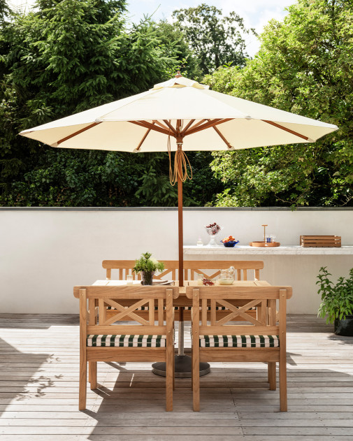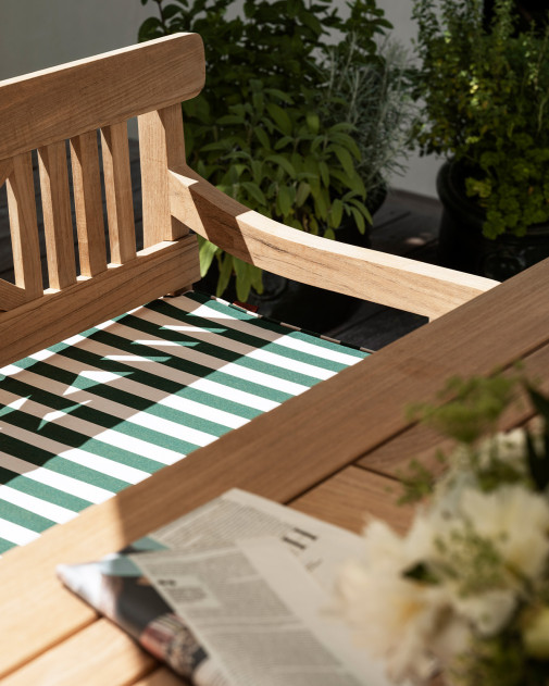 Seria Drachmann, wprowadzona na rynek w 1982 roku, jest najdłużej istniejącą serią mebli ogrodowych marki Skagerak. Jej ponadczasowy design, z charakterystycznym krzyżowym oparciem, stał się ikoną skandynawskiego wzornictwa ogrodowego. Krzesło Drachmann, zaprojektowane przez Bernta Santessona, czerpie inspirację z pięknego ogrodu duńskiego poety i malarza Holgera Drachmanna, łącząc nordycką nostalgię z nowoczesną prostotą. Wykonane z litego drewna tekowego z certyfikatem FSC™, krzesło jest nie tylko estetyczne, ale także wyjątkowo trwałe i odporne na różne warunki pogodowe. Drewno tekowe, znane ze swojej naturalnej odporności na gnicie i warunki atmosferyczne, z czasem nabiera srebrzystoszarej patyny, dodając meblowi elegancji i charakteru. Krzesło Drachmann doskonale sprawdza się zarówno jako samodzielny element dekoracyjny, jak i wygodne miejsce do siedzenia przy stole w ogrodzie czy na tarasie.