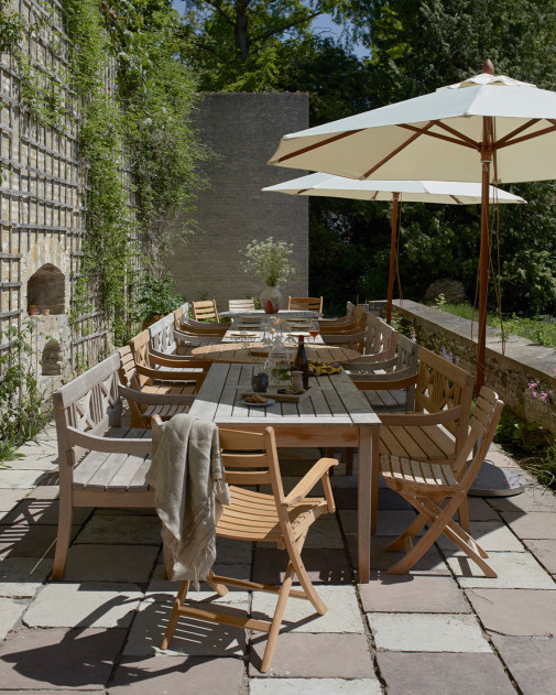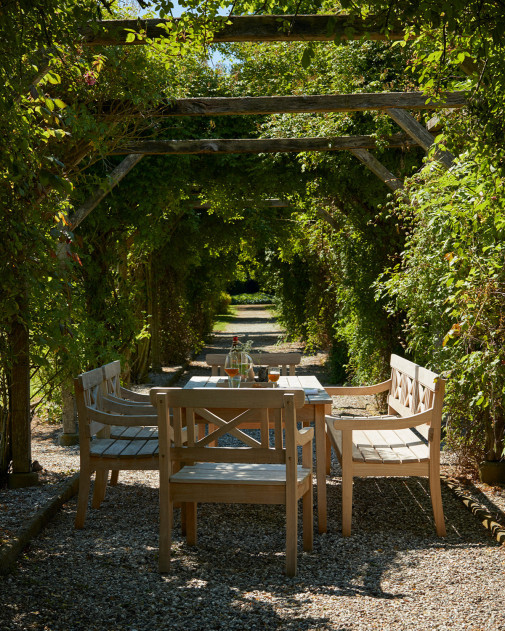 Krzesło Drachmann to klasyczny mebel ogrodowy, zaprojektowany przez duńskiego projektanta Bernta Santessona. Inspirowane ogrodem duńskiego poety i malarza Holgera Drachmanna, łączy nordycką nostalgię z nowoczesną prostotą. Wykonane z litego drewna tekowego z certyfikatem FSC™, krzesło jest trwałe i odporne na warunki atmosferyczne, a z czasem nabiera eleganckiej srebrzystoszarej patyny.