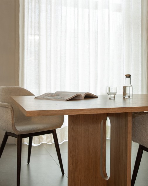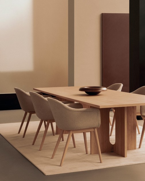 Harbour Chair to część kolekcji Harbour, zaprojektowanej przez duńskie studio Norm Architects. Krzesło charakteryzuje się minimalistycznym wzornictwem, które łączy elegancję z funkcjonalnością. Ergonomicznie ukształtowane siedzisko zapewnia optymalne wsparcie dla pleców, a tapicerka dodaje nowoczesnego charakteru. Drewniana podstawa w kształcie gwiazdy zapewnia trwałość i stabilność, a jej geometryczny kształt nadaje krzesłu lekkości i nowoczesnego wyglądu. Dodatkowo, krzesło wyposażone jest w funkcję obrotu, co ułatwia jego przemieszczanie i dostosowanie do różnych potrzeb.