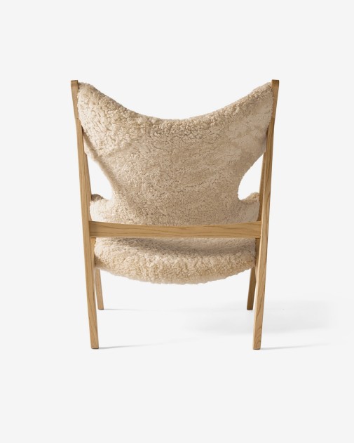 Knitting Lounge Chair to elegancki fotel wypoczynkowy zaprojektowany przez Iba Kofod-Larsena w 1951 roku, charakteryzujący się odsłoniętą, trójkątną konstrukcją oraz unikalnymi wycięciami w oparciu, które umożliwiają wygodne oparcie łokci podczas czytania lub robienia na drutach.