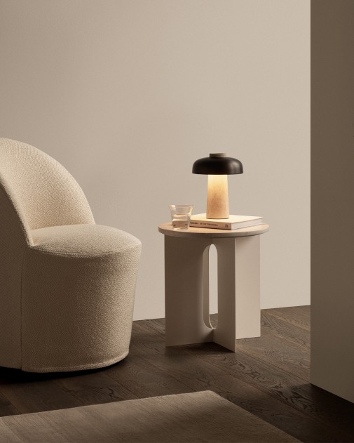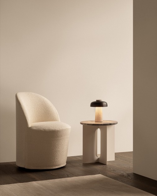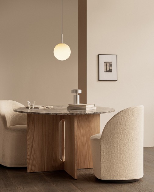 Tearoom Side Chair Swivel with Return to elegancki fotel wypoczynkowy zaprojektowany przez Nicka Rossa dla Audo Copenhagen, łączący nowoczesny design z wyjątkowym komfortem dzięki obrotowej podstawie z mechanizmem powrotu.