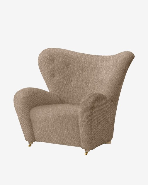 The Tired Man, stworzony przez Flemminga Lassena w 1935 roku, to ikoniczny fotel reprezentujący duński modernizm. Jego charakterystyczne, organiczne kształty i obszerne podłokietniki zapewniają użytkownikowi uczucie otulenia i komfortu, które Lassen porównał do "ciepła niedźwiedzia polarnego w objęciach matki". Fotel został ponownie wprowadzony na rynek w 2015 roku przez Audo Copenhagen, oferując różnorodne opcje tapicerki, w tym luksusową owczą skórę, nawiązującą do oryginalnego projektu. Solidne nogi wykonane z naturalnego lub ciemno olejowanego drewna dębowego oraz przednie mosiężne kółka ułatwiające przemieszczanie dodają elegancji i funkcjonalności. Dodatkowy podnóżek zwiększa komfort użytkowania, czyniąc The Tired Man idealnym miejscem do relaksu w domowym zaciszu lub ekskluzywnych przestrzeniach publicznych.