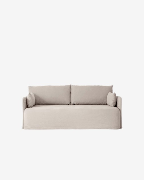 Offset Loose Cover został stworzony przez renomowane studio Norm Architects dla Audo Copenhagen, z myślą o zwiększeniu funkcjonalności i wszechstronności sofy Offset. Pokrowiec wykonany jest z niestandardowej tkaniny będącej mieszanką bawełny i lnu, dostępnej w trzech ponadczasowych kolorach. Dzięki możliwości zdejmowania i prania, pokrowiec nie tylko ułatwia utrzymanie sofy w czystości, ale także pozwala na łatwą zmianę jej wyglądu, dostosowując ją do różnych stylów wnętrz i osobistych preferencji. Solidna rama sofy Offset została zaprojektowana tak, aby służyć przez lata, a wymienny pokrowiec pozwala na odświeżenie jej wyglądu bez konieczności wymiany całego mebla, co przyczynia się do zrównoważonego podejścia do designu i redukcji odpadów. Pokrowiec mocowany jest za pomocą ukrytego paska na rzep, co zapewnia estetyczny wygląd i łatwość użytkowania.