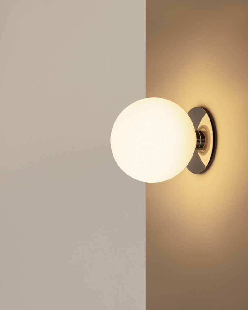 TR Bulb Ceiling/Wall Lamp to elegancka i funkcjonalna lampa zaprojektowana przez Tima Rundle’a we współpracy z Audo Copenhagen. Można ją łatwo zamontować na ścianie lub suficie, bez konieczności skomplikowanej instalacji. Ściemnialna żarówka LED ukryta w opalowym szkle rozprasza miękkie, nieoślepiające światło. Dostępna w wykończeniach: stal malowana proszkowo, szczotkowany mosiądz oraz polerowana stal nierdzewna.