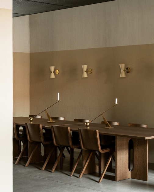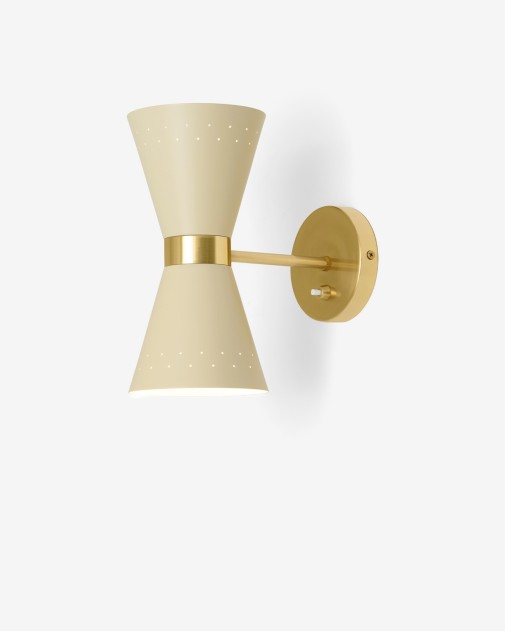 Collector Wall Lamp to wyjątkowa lampa ścienna zaprojektowana w latach 50. przez szwedzkiego projektanta Alfa Svenssona. Charakterystyczny mosiężny pierścień utrzymuje stożkowy klosz, który rozprasza światło w dwóch kierunkach. Małe perforacje w kloszu subtelnie przepuszczają światło, tworząc przyjemny efekt wizualny. Część kolekcjonerskiej serii, nawiązującej do najlepszych tradycji mid-century modern.