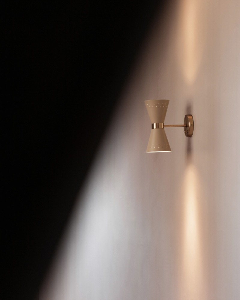 Collector Wall Lamp to ponadczasowy klasyk wzornictwa, zaprojektowany przez Alfa Svenssona w latach 50. XX wieku. Jest częścią kultowej serii Collector, będącej esencją eleganckiego oświetlenia w stylu mid-century modern. Lampa wyróżnia się wyjątkowym połączeniem solidnego mosiężnego pierścienia i stożkowego klosza z perforacjami, które subtelnie filtrują światło, dodając wnętrzu ciepła i charakteru. Lampa została zaprojektowana tak, aby rozpraszać światło w dwóch kierunkach, co czyni ją idealnym wyborem zarówno do oświetlenia akcentowego, jak i dekoracyjnego. Jej uniwersalna elegancja sprawia, że doskonale komponuje się zarówno z nowoczesnymi, jak i klasycznymi wnętrzami – od salonu, przez sypialnię, aż po korytarze i przestrzenie komercyjne. Dzięki swojej kolekcjonerskiej wartości, Collector Wall Lamp jest nie tylko funkcjonalnym elementem oświetleniowym, ale także ponadczasowym dodatkiem, który wnosi do wnętrza historię i wyjątkowy design.