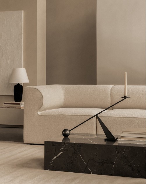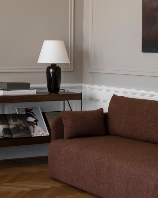 Torso Table Lamp 57 to elegancka lampa stołowa zaprojektowana przez Krøyer-Sætter-Lassen, łącząca rzeźbiarską ceramikę z delikatnym lnem. Jej wydłużona podstawa z czarnej, szkliwionej kamionki nadaje wnętrzu nowoczesny, a jednocześnie ponadczasowy charakter. Lniany klosz subtelnie rozprasza światło, a mosiężny ściemniacz dotykowy pozwala na łatwą regulację natężenia oświetlenia, tworząc przytulną atmosferę.