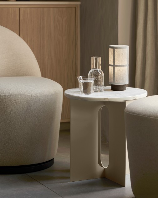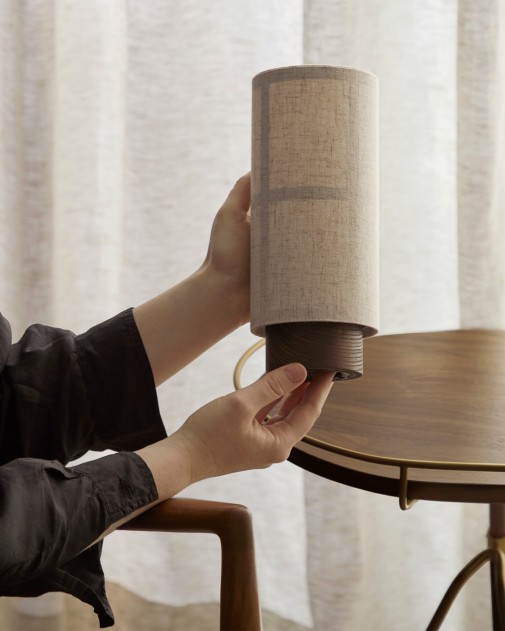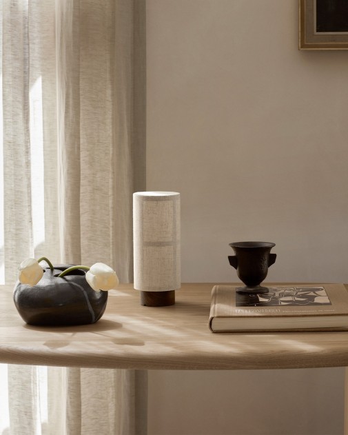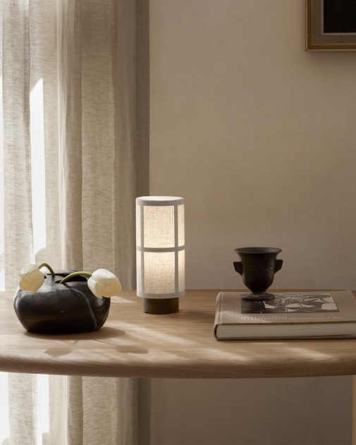 Hashira Table Lamp Portable to kompaktowa, przenośna wersja kultowej lampy inspirowanej japońskimi lampionami. Zaprojektowana przez Norm Architects dla Audo, zapewnia nastrojowe oświetlenie w dowolnym miejscu – zarówno wewnątrz, jak i na zewnątrz. Wyposażona w ukryty port USB, oferuje do 10 godzin regulowanego światła po pełnym naładowaniu.