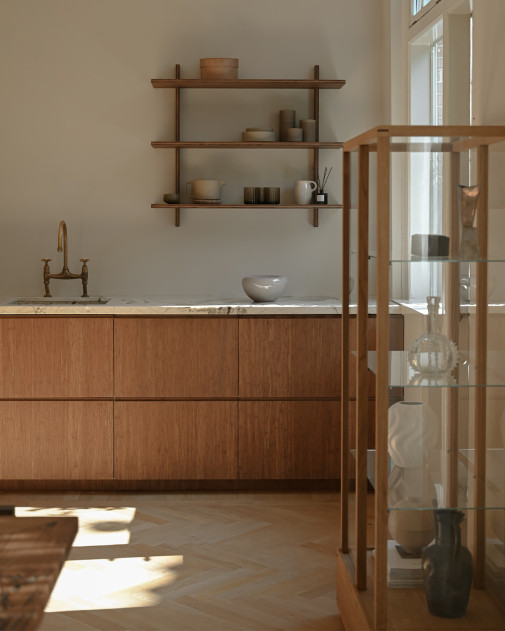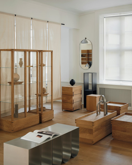 Japanese Vitrine L to elegancka witryna zaprojektowana przez Kristina Dam Studio, będąca skandynawską interpretacją japońskiej estetyki. Proste, precyzyjne linie oraz doskonale wyważone proporcje tworzą spokojną, architektoniczną bryłę, która harmonijnie wpisuje się w nowoczesne i minimalistyczne wnętrza.