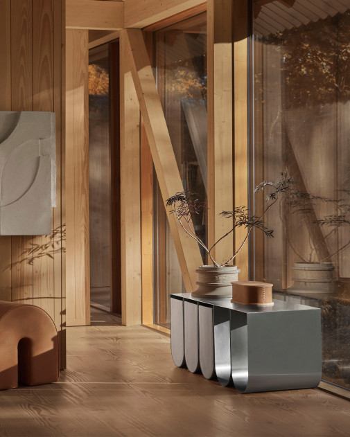 Curved Bench | Rzeźbiarska ławka Curved to odważny projekt z kolekcji Curved Series autorstwa Kristina Dam Studio, zaprojektowany z myślą o nowoczesnych, świadomie urządzonych wnętrzach. Forma ławki opiera się na pięciu rytmicznych krzywiznach, które nadają bryle rzeźbiarski, architektoniczny charakter.