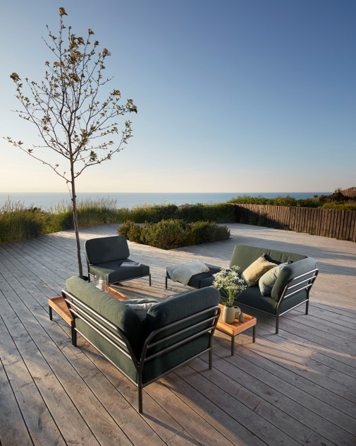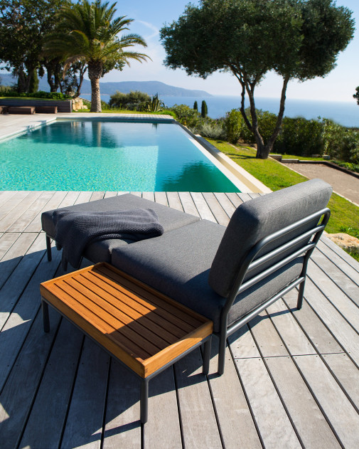 LEVEL Lounge Ottoman doskonale współgra z fotelem i sofą LEVEL, tworząc spójną, funkcjonalną strefę wypoczynku — zarówno w prywatnym ogrodzie, jak i w przestrzeniach hotelowych czy tarasowych.
