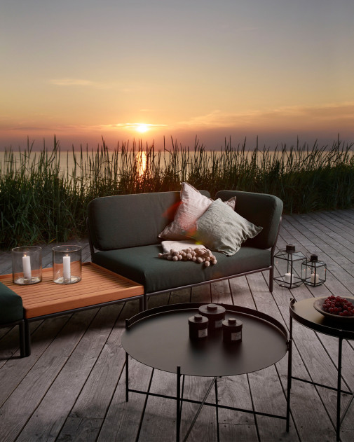 LEVEL Lounge Ottoman jest częścią kolekcji LEVEL marki HOUE, stworzonej jako modułowy system mebli wypoczynkowych do użytku zewnętrznego. Podnóżek zaprojektowano z myślą o elastycznym użytkowaniu — jako klasyczne podparcie nóg, dodatkowe miejsce do siedzenia lub element rozbudowanej aranżacji lounge.