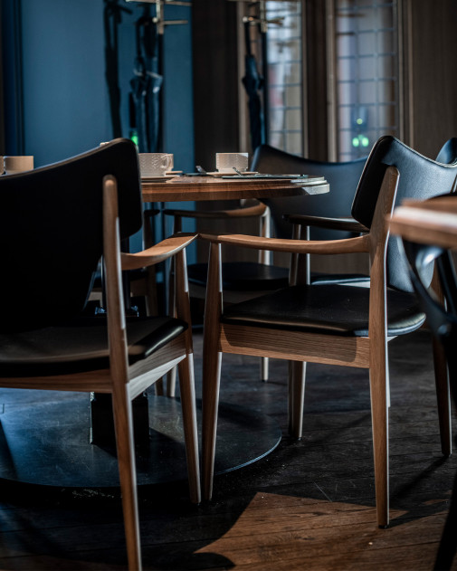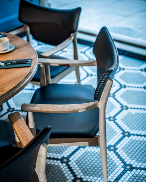 Mimo kompaktowych proporcji krzesło zachowuje charakterystyczną ekspresję całej kolekcji Veng. Smukła drewniana konstrukcja zestawiona z miękko wyprofilowanym oparciem tworzy dynamiczną, rzeźbiarską sylwetkę. Organiczne linie i starannie dopracowane proporcje podkreślają kunszt rzemieślniczy projektu.