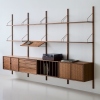 ROYAL SYSTEM® składa się z naściennych drewnianych szyn, półek z wieszakami z mosiądzu lub stali nierdzewnej oraz różnych modułów, takich jak szafki, szuflady i biurka, które można dostosować w wielu indywidualnych kombinacjach - w rzeczywistości Poul Cadovius twierdził, że oryginalny system miał 16 milionów możliwości kombinacji.